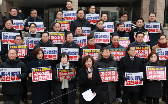 나경원 의원은 "공수처는 민주당의 하명 수사처가 됐다"며 "한마디로 불법 자행 기구, 편법수사 기구, 법치 유린 기구, 민주주의를 파괴하는 기구로 전락했다"고 말했다.