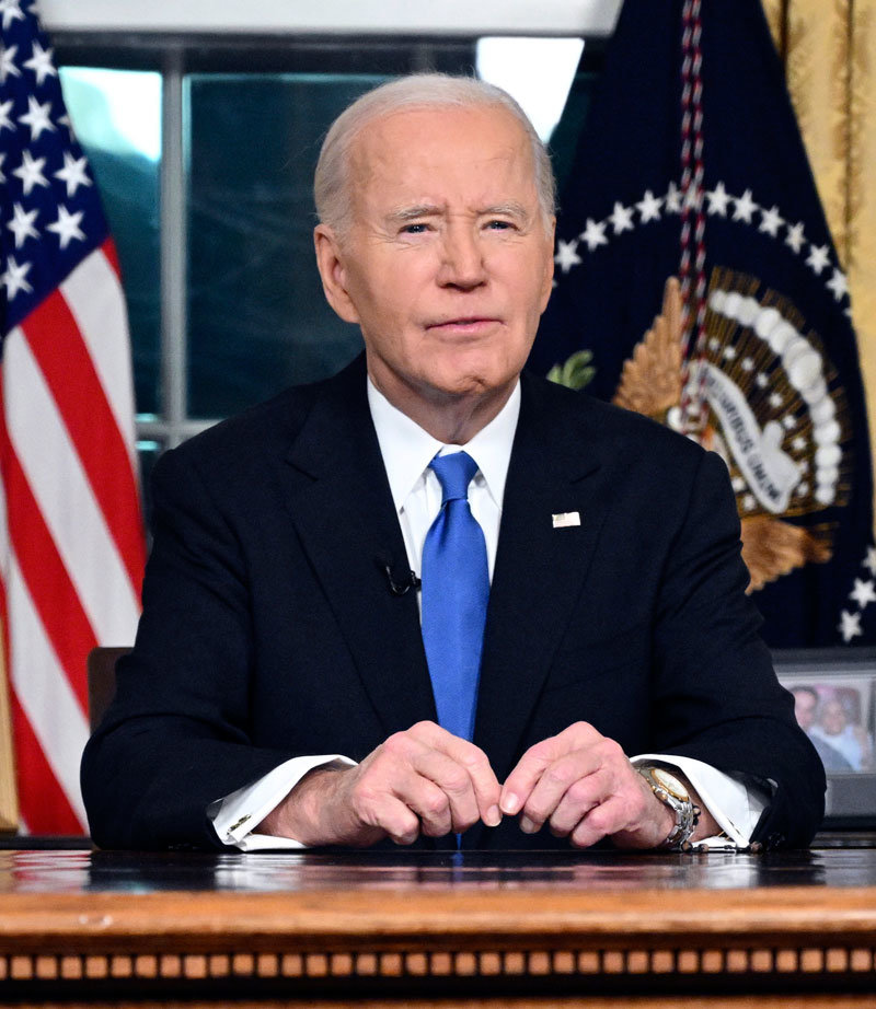 조 바이든 미국 대통령이 15일 백악관 대통령 집무실인 오벌오피스에서 고별 연설을 하고 있다. 워싱턴=AP 뉴시스 |