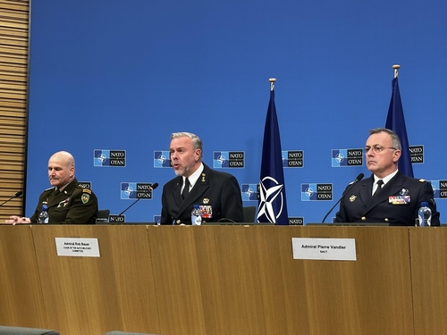 (브뤼셀=연합뉴스) 롭 바우어 나토 군사위원장(중앙)이 16일(현지시간) 벨기에 브뤼셀에서 열린 나토 국방총장회의 기자회견에서 발언하고 있다. 2025.1.16 shine@yna.co.kr |