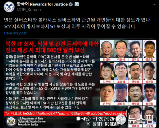 [미국 국무부 공개 수배 포스터 캡쳐] |