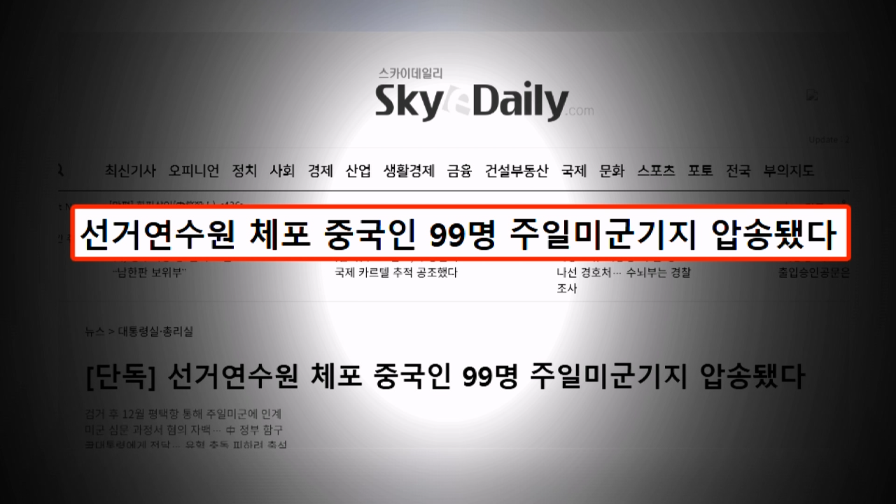 어제(16일) 한 온라인 매체가 계엄 당일 선거관리연수원에서 99명의 중국인 간첩이 체포돼 주일미군기지로 압송됐다고 보도했습니다.