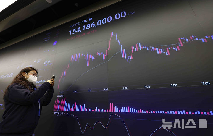 [서울=뉴시스] 김근수 기자 = 가상화폐 비트코인이 하루 만에 사상 최고가 경신해 한때 10만7천800달러대 기록한 17일 오전 서울 강남구 가상화폐 거래소 업비트 고객센터 전광판에 비트코인 거래 가격이 나오고 있다. 2024.12.17. ks@newsis.com |
