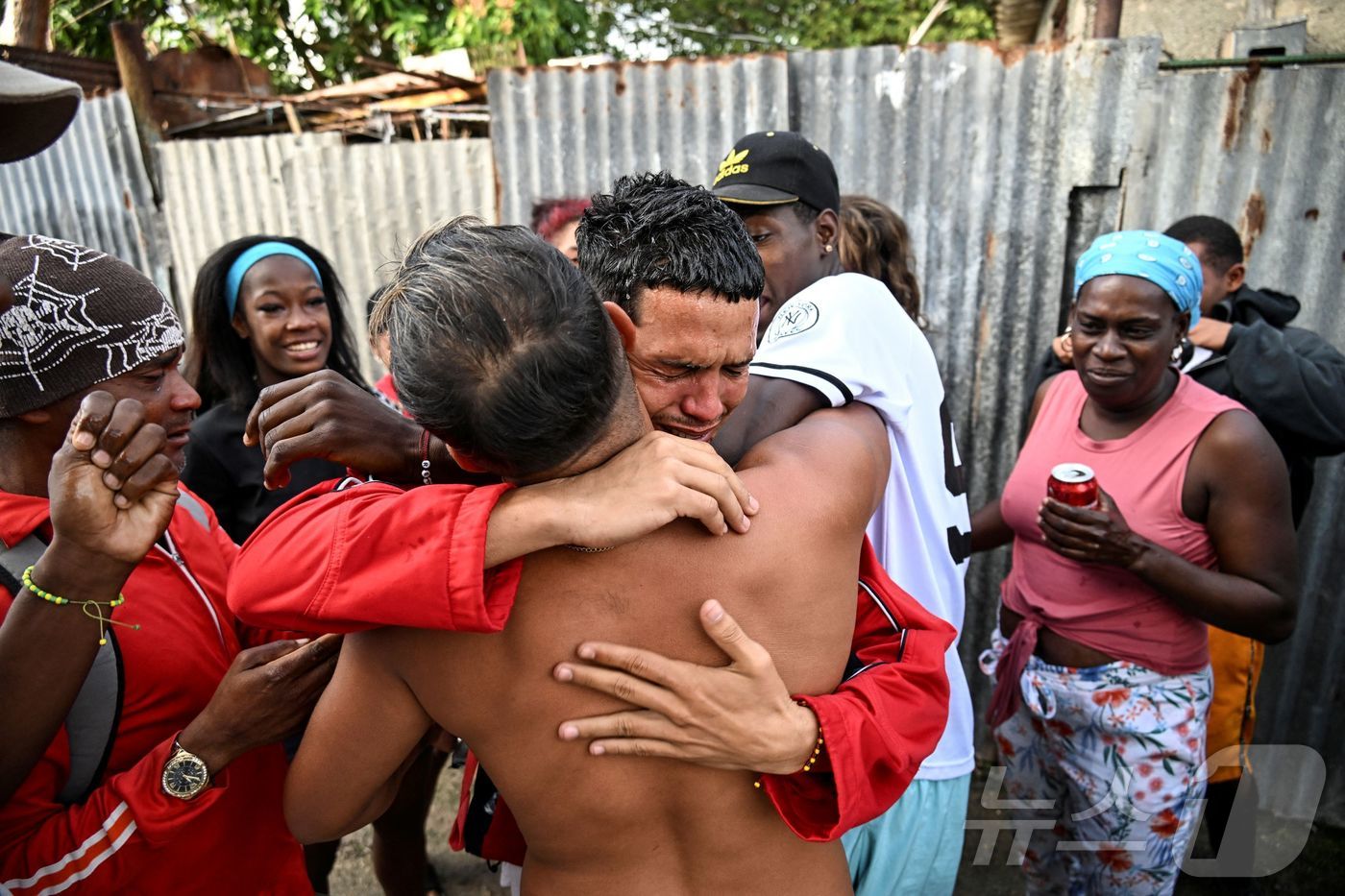 16일(현지시간) 쿠바 아바나에서 정치범 석방 조치로 풀려난 말론 브란도 디아즈가 가족들과 포옹하고 있다. 그는 2021년 7월 반정부 시위에 참여했다는 이유로 체포되어 수감 생활을 해 왔다. 2025.01.16 ⓒ AFP=뉴스1 ⓒ News1 김지완 기자 |