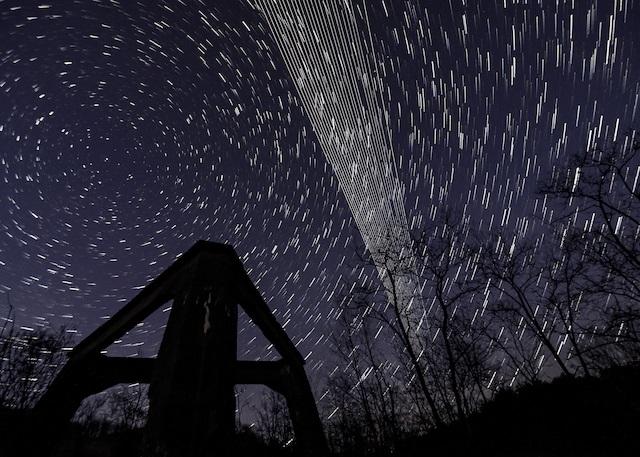2020년 4월 헝가리 노그라드주 밤하늘을 찍은 사진에 스타링크 위성들의 궤적이 나타나 있다. EPA 연합뉴스 |