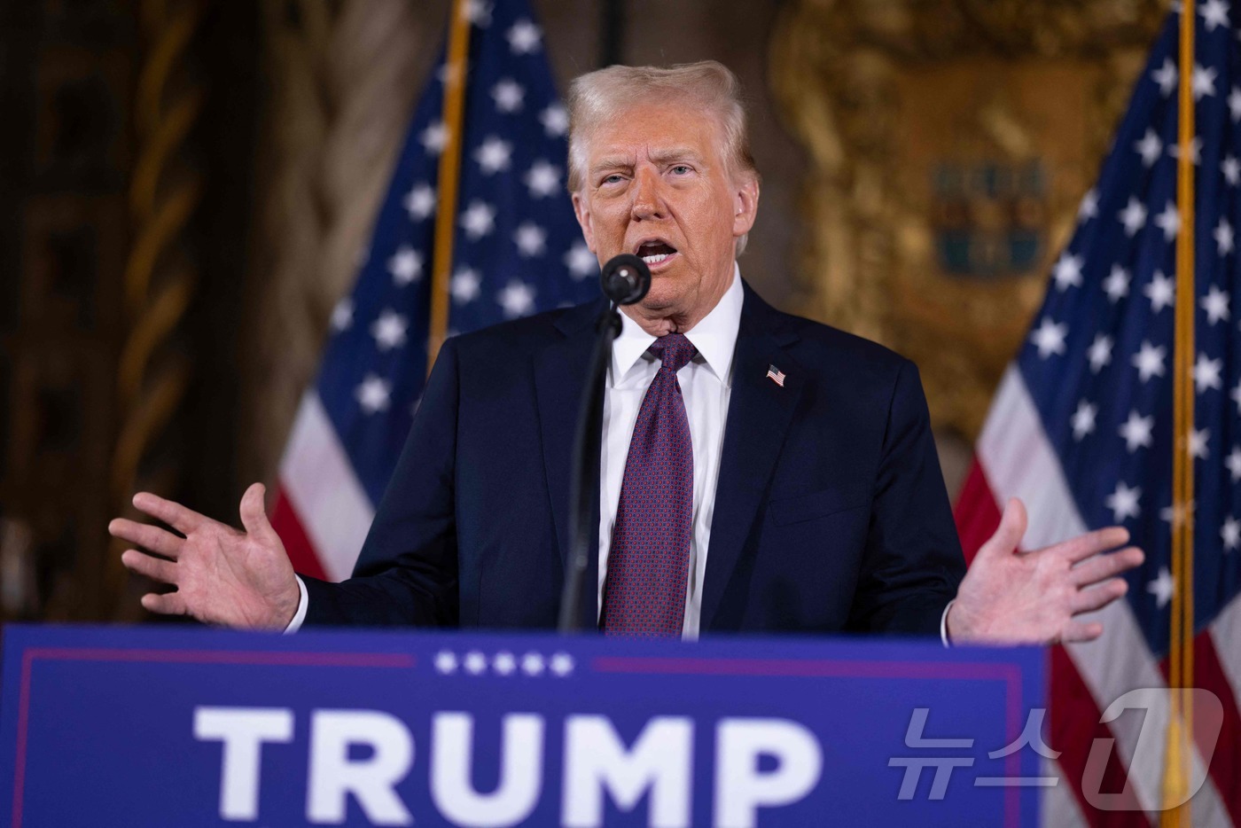 도널드 트럼프 미국 대통령 당선인이 7일 (현지시간) 플로리다주 팜비치에 있는 마러라고 저택에서 기자회견을 갖는 모습. 2025.01.08 ⓒ AFP=뉴스1 ⓒ News1 우동명 기자 |