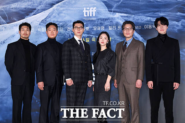 현빈(왼쪽에서 세 번째)이 주연을 맡은 영화 '하얼빈'이 개봉 이후 단 하루도 놓치지 않고 박스오피스 1위를 기록하고 있다. /서예원 기자 |