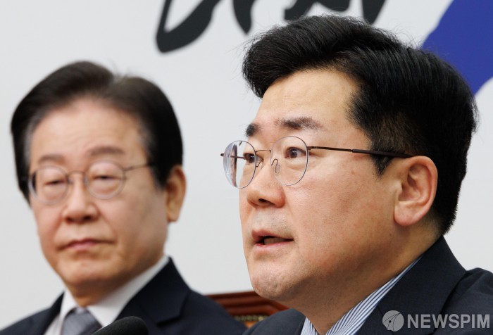 [서울=뉴스핌] 윤창빈 기자 = 박찬대 더불어민주당 원내대표가 20일 오전 서울 여의도 국회에서 열린 최고위원회의에서 모두발언을 하고 있다. 2025.01.20 pangbin@newspim.com