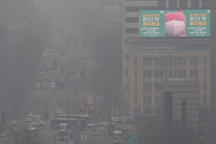 서울시에 올해 초미세먼지 주의보가 발령된 것은 처음이다. 보건환경연구원은 “국내 대기오염 물질이 축적된 상태에서 국외의 대기오염물질이 수도권으로 유입돼 초미세먼지 농도가 높아졌다”고 밝혔다.