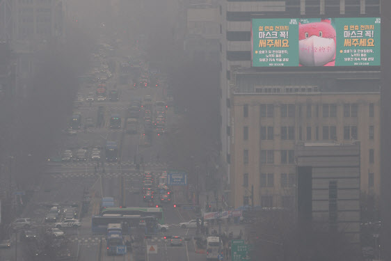 초미세먼지 농도가 ‘나쁨’ 수준을 보인 20일 오전 서울 종로구 서울시교육청에서 바라본 도심이 뿌옇다. (사진=연합뉴스) |