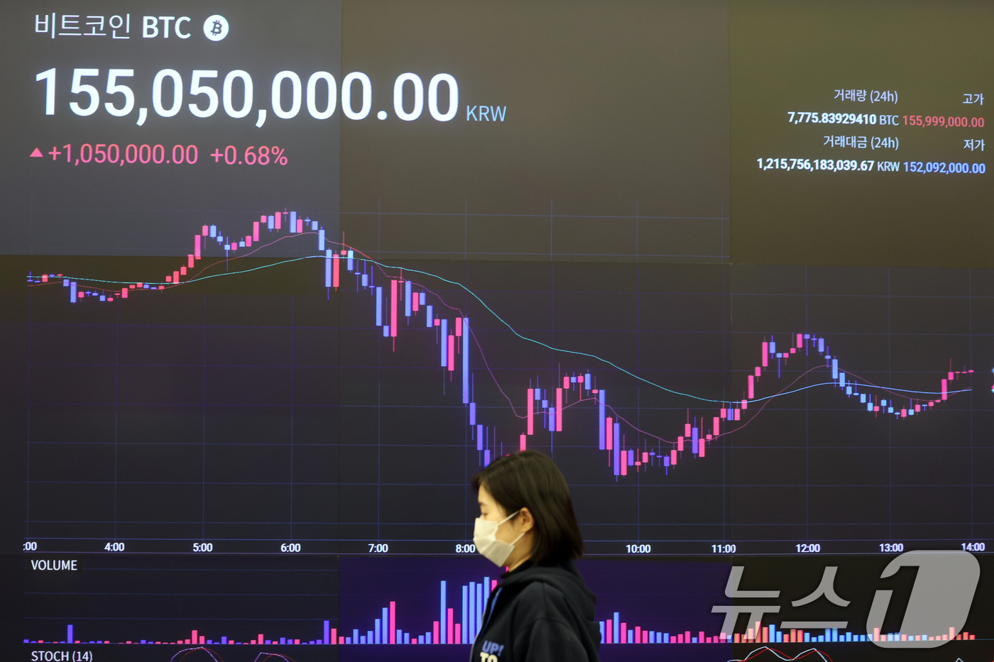 (서울=뉴스1) 황기선 기자 = 도널드 트럼프 대통령 당선인의 취임식을 앞둔 20일 오후 서울 강남구 업비트 고객센터 전광판에 비트코인 시세가 표시되고 있다 트럼프 당선인의 취임식이 다가오자, 비트코인은 전날 오후 한때 사상 최고가(1억5990만원)를 경신했다. 이후 상승분을 반납한 뒤 1억5400만원 대로 떨어지며 숨 고르기에 들어간 모습이다. 2025.1.20/뉴스1
