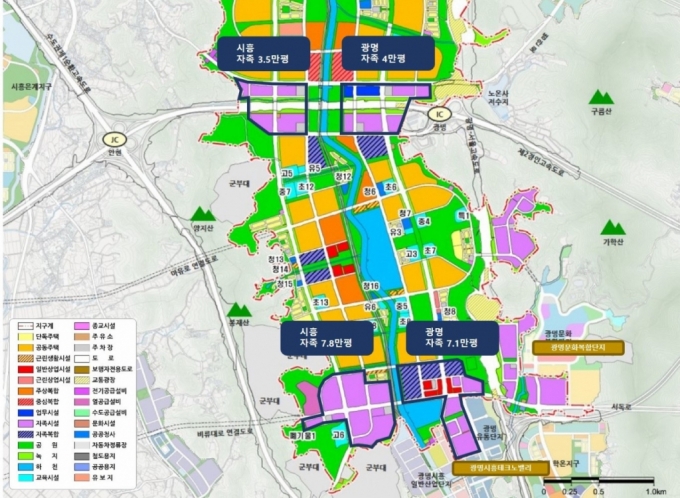 광명시는 대상지 가운데 중앙부는 인공지능, 미래차 연구개발 집적 용지로, 남부는 문화, 바이오 집적 용지로 개발해 '대한민국 핵심 지식집약산업 R&D의 메카'로 조성할 구상이다.