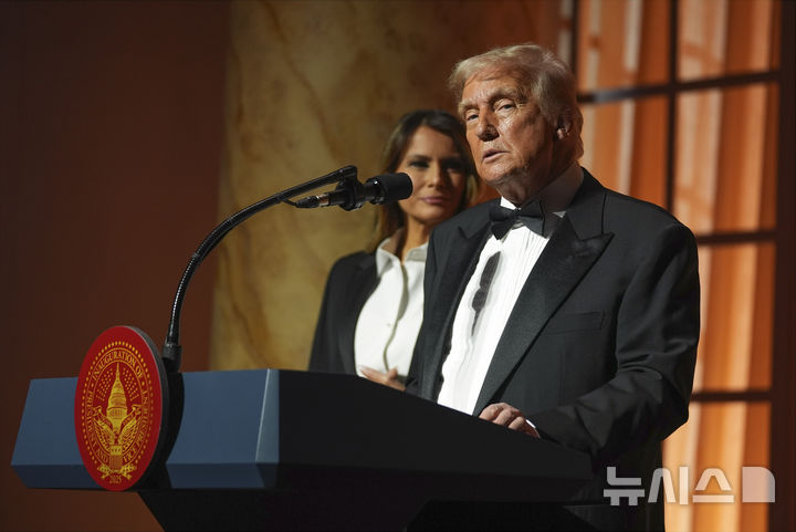 [워싱턴=AP/뉴시스] 도널드 트럼프 미국 대통령 당선인이 19일(현지 시간) 워싱턴DC에서 열린 취임 전야 만찬에 참석해 연설하고 있다. 2025.01.20. |