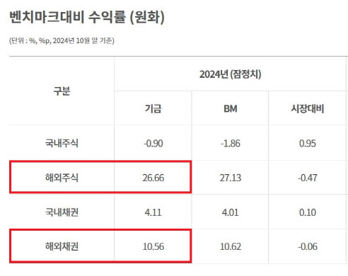 또한 원화 기준으로 계산한 작년 한 해 해외주식 수익률(잠정치)은 26.66%며, 해외채권 수익률은 10.56%로 집계됐다.