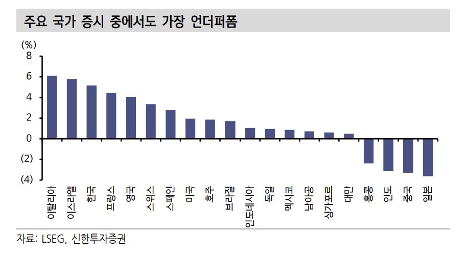 오한비 신한투자증권 연구원은 "글로벌 금리 급등이라는 외부 요인 외에도, 일본 증시의 상대적 부진은 금리 인상에 대한 경계, 패스트리테일링이 중국 실적 부진으로 인해 급락하는 등 주요 기업들의 실적에 대한 우려도 커졌기 때문"이라고 분석했다.