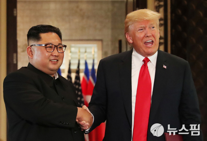 북미정상회담에서 김정은 위원장과 악수하는 트럼프 대통령 [사진=로이터 뉴스핌] |