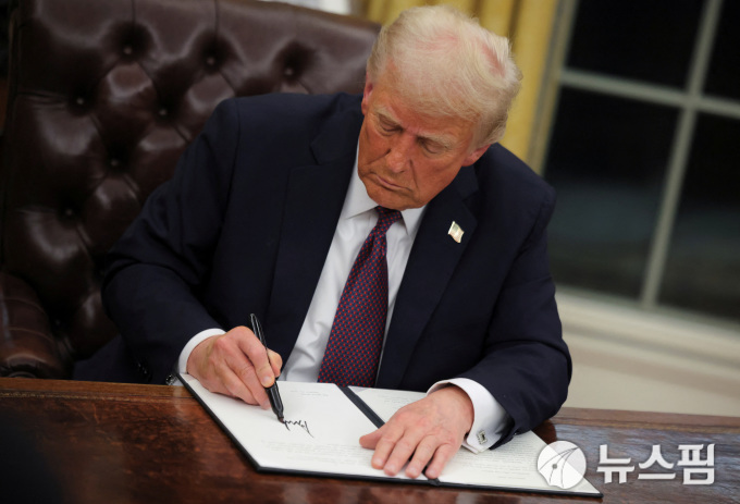 20일(현지시간) 취임 첫날 백악관 집무실에서 행정명령 서명하는 도널드 트럼프 미국 대통령. [사진=로이터 뉴스핌] |