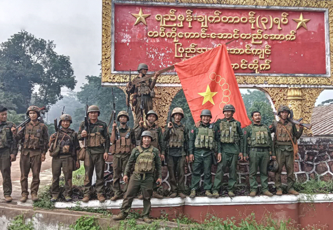 지난해 8월 미얀마 샨주 주도 라시오에 위치한 미얀마 군부의 북동부 군사 사령부를 점령한 미얀마민족민주주의동맹군(MNDAA)의 모습/이라와디 캡쳐 |