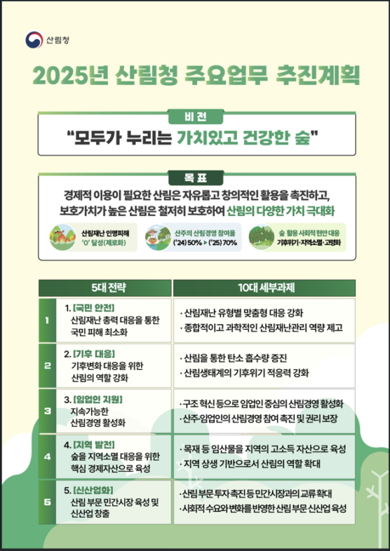 '2025년 주요업무 추진계획' 발표… △국민 안전 △기후 대응 △임업인 지원 △지역 발전 △신산업화 등 추진