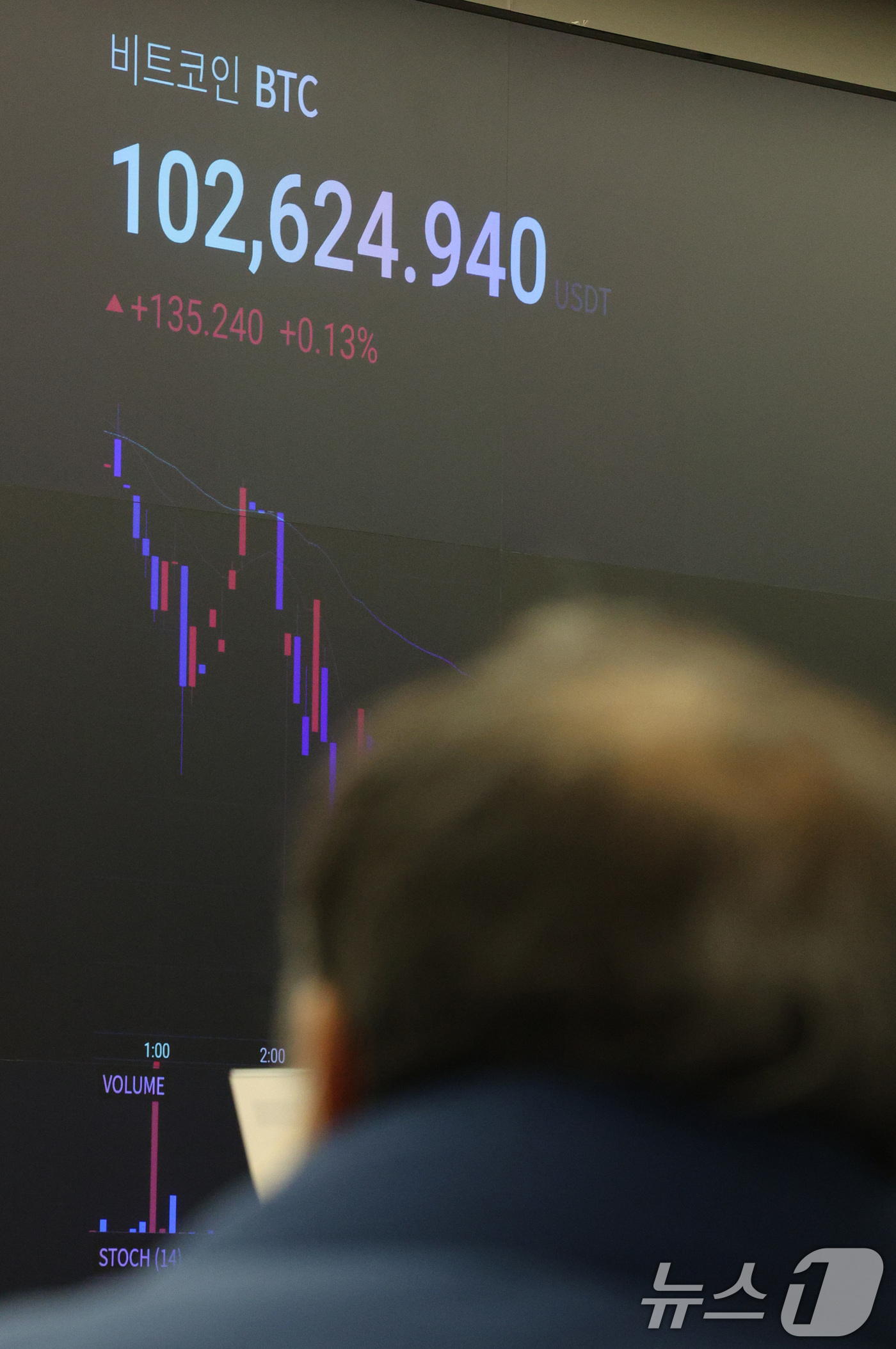 (서울=뉴스1) 신웅수 기자 = 도널드 트럼프 미국 대통령 당선인이 취임한 21일 서울 강남구 업비트 고객센터 전광판에 비트코인 시세가 표시되고 있다. 트럼프 효과로 1억6000만 원을 돌파한 비트코인은 이날 업비트 기준 1억5500만 원 선에서 거래되고 있다. 2025.1.21/뉴스1