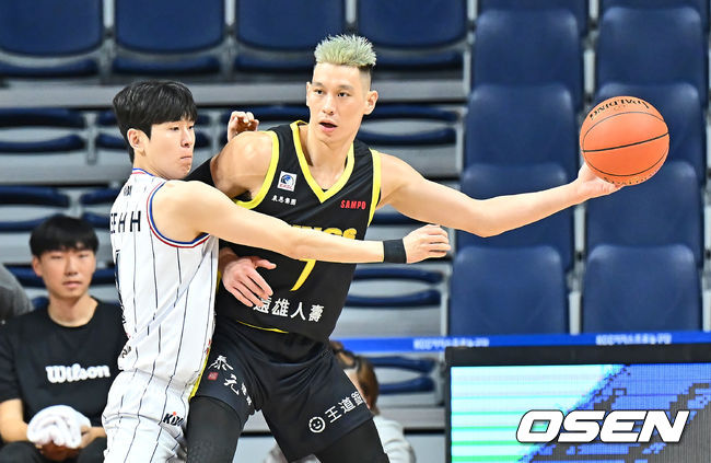 뉴 타이베이 킹스 Jeremy Lin이 부산 KCC 이호현의 마크를 피해 패스하고 있다. 2025.01.21 / foto0307@osen.co.kr