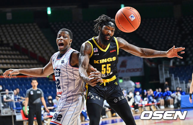 부산 KCC 캐디 라렌이 뉴 타이베이 킹스 Kenneh Manigault Jr.와 리바운드볼을 다투고 있다. 2025.01.21 / foto0307@osen.co.kr