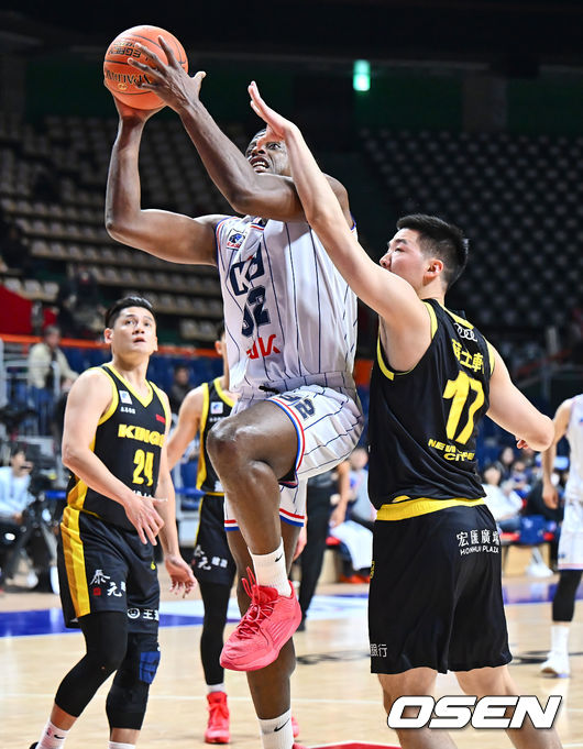 부산 KCC 캐디 라렌이 뉴 타이베이 킹스 Su Shih-Hsuan의 마크를 피해 골밑슛을 시도하고 있다. 2025.01.21 / foto0307@osen.co.kr