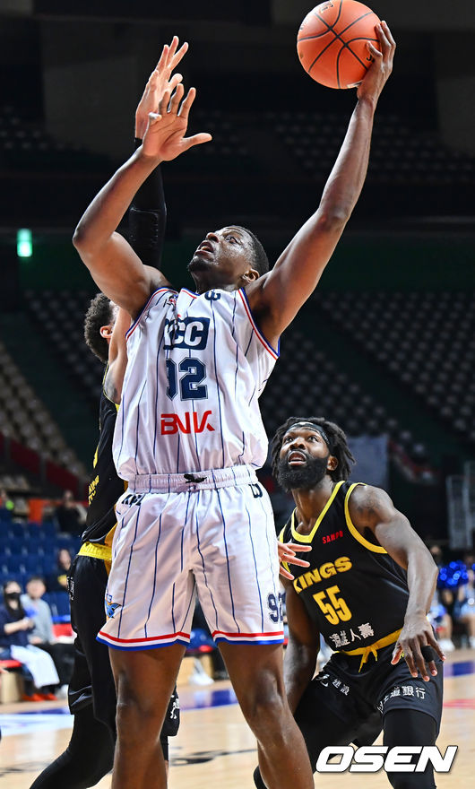 부산 KCC 캐디 라렌이 뉴 타이베이 킹스 Kenneh Manigault Jr.의 마크를 피해 골밑슛을 시도하고 있다. 2025.01.21 / foto0307@osen.co.kr