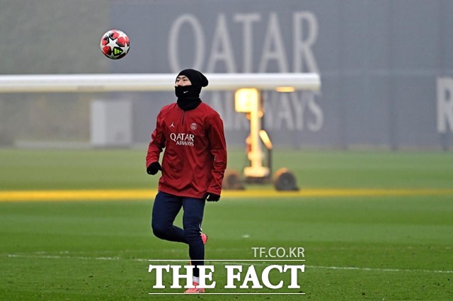 PSG의 이강인이 23일 맨시티와 2024~2025 UCL 매치데이7 홈경기를 앞두고 팀 훈련을 하고 있다./PSG |