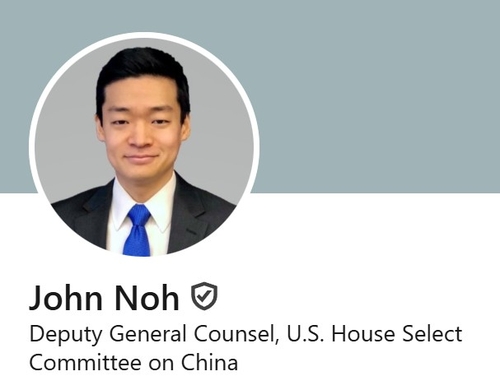 한국계로 스탠퍼드대 로스쿨 출신인 노 부차관보는 직전에는 미국 하원의 중국특위에서 근무했으며 연방 검사 등을 역임했다.