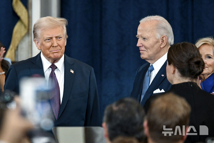 [워싱턴=AP/뉴시스] 도널드 트럼프 미국 대통령과 조 바이든 전 대통령이 지난 20일(현지 시간) 미국 워싱턴 연방의회 의사당 로툰다 홀에서 열린 트럼프 대통령 취임식에 참석해 있다. 2025.01.23. |