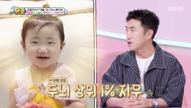 장동민은 그간 다양한 서바이벌 프로그램에서 뛰어난 두뇌싸움을 펼치며 활약을 펼쳐 왔다. 이에 ‘갓동민’이라는 칭호를 얻었던 만큼, 그의 딸 지우 역시 일찍이 천재성에 두각을 드러냈다. KBS2 ‘슈퍼맨이 돌아왔다’(‘슈돌’) 등에 출연해 유창한 영어실력과 영특함으로 시청자들을 깜짝 놀라게 만든 것.