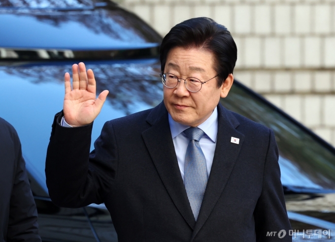 [서울=뉴시스] 전신 기자 = 이재명 더불어민주당 대표가 23일 서울 서초구 서울고등법원에서 열린 공직선거법 위반 혐의 항소심 첫 재판에 출석하며 지지자 등을 향해 인사하고 있다. 2025.01.23. photo1006@newsis.com /사진=전신 |