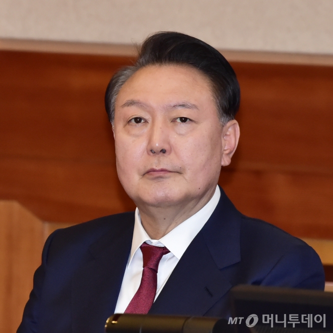윤석열 대통령이 23일 서울 종로구재동 헌법재판소 심판정에서 진행된 탄핵 심판 4차 변론에 출석했다. 이날 윤 대통령은 지난 21일 제3차 탄핵심판 이후 두번째로 헌재에 출석한 가운데 오늘도 정장차림에 빨간 넥타이를 메고 심판정에 들어섰다. 윤 대통령은 첫 번째 출석 때처럼 비상계엄의 당위성과 그 과정에서의 합법성을 주장했다. /사진=임한별(머니S) |
