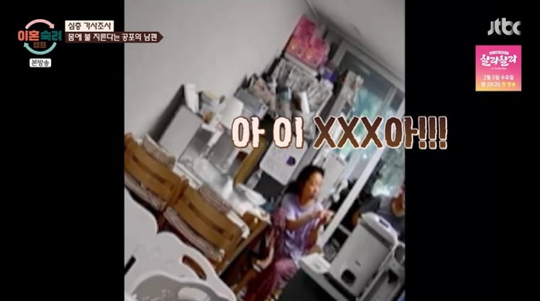 이어 아내는 "저 죽인다고 몸에 불 지른다고 했다"며 제작진에게 증거 영상을 제출했다. 영상에는 남편이 아내에게 심한 욕설을 하는 모습이 담겼고, 이에 아내는 "그러면 안 되는데 극단적인 시도까지 했었다"고 고백했다.