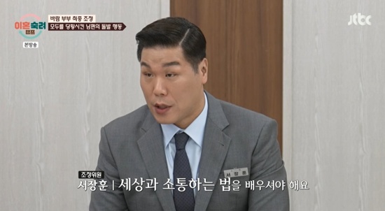 남편은 "그분에 대해 자꾸 얘기하니까 감정이 올라와서"라며 사과했다. 이에 서장훈은 황당해 하면서 "참 특이한 분이네. 여러가지로"라며 "조금 더 살아본 입장에서 (말하자면), 남편은 세상과 소통하는 법을 배우셔야 한다"고 조언했다.