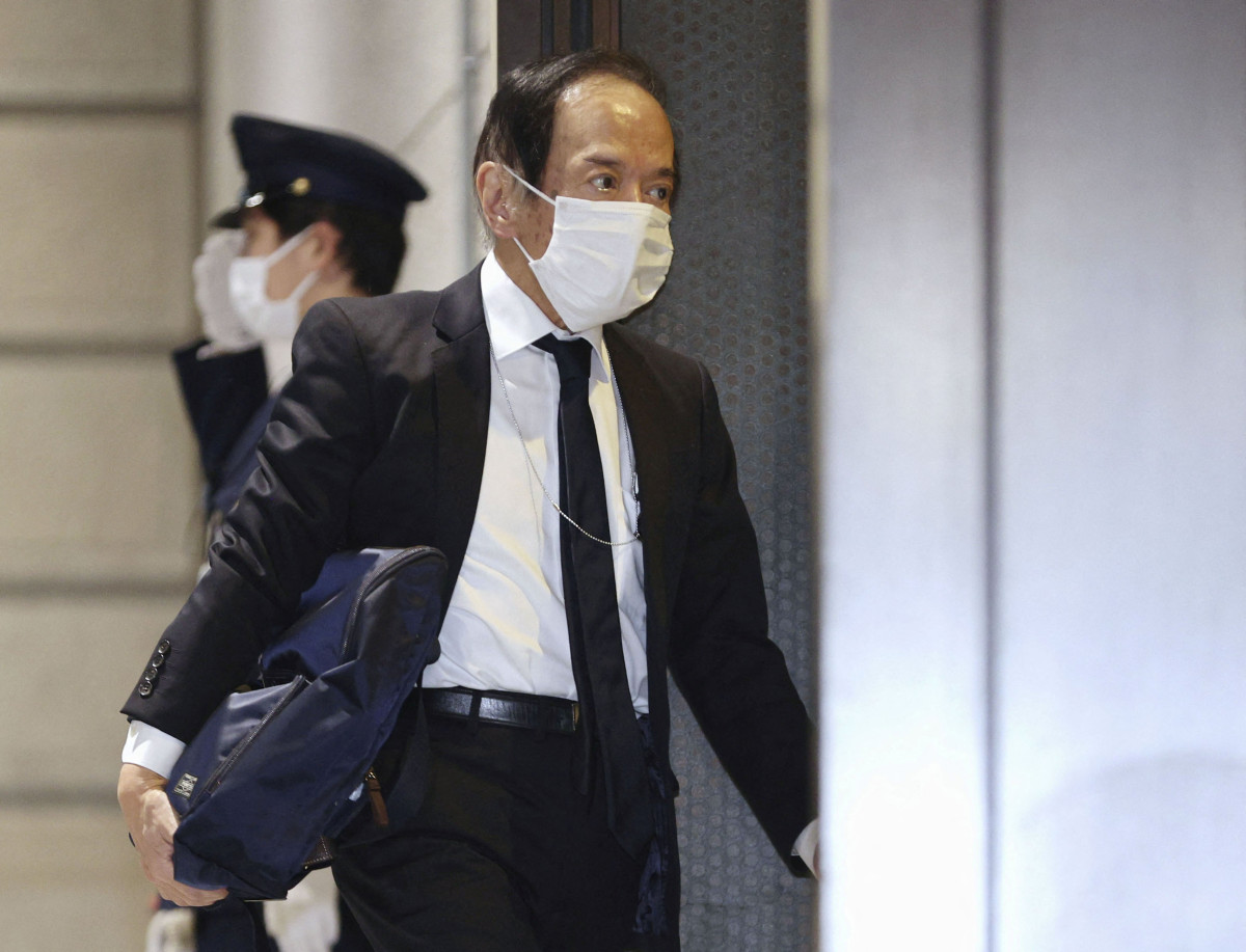 우에다 가즈오 일본은행 총재가 24일 금융정책결정회의 이틀차를 맞아 회의장으로 걸어가고 있다. 도쿄/교도연합뉴스 |