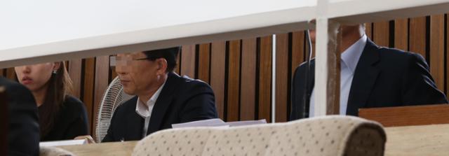 2018년 10월 '국가정보원 댓글사건 진상규명을 위한 국정조사청문회'에 증인으로 출석한 박원동(가운데) 전 국익정보국장 등 전현직 국정원 직원들이 청문회장에 설치된 가림막 뒤에서 의원들의 심문을 받고 있다. 한국일보 자료사진 |