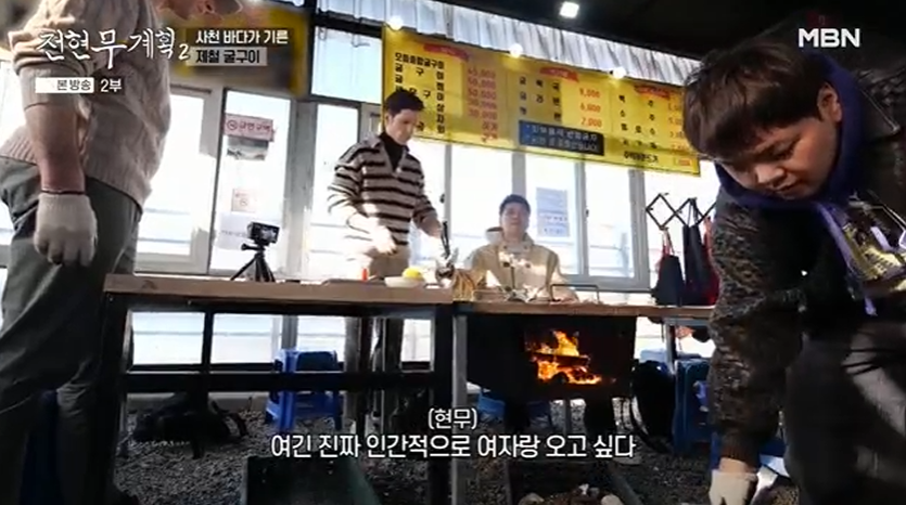 이후 조개구이와 굴구이를 즐기던 전현무는 "여긴 진짜 인간적으로 여자랑 오고 싶다"며 짜증냈다. 이에 알베르토는 "오늘 그래서 알려드리기만 했고, 다음에 펜션 잡고 밤에 와서"라고 말하며 전현무를 위로했다.