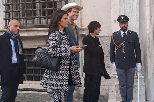 안사(ANSA) 통신 등 현지 언론매체에 포착된 킴벌은 이날 평소처럼 카우보이 모자를 쓰고 캐주얼한 재킷에 청바지 차림으로 이탈리아 정부의 핵심 장소인 키지궁에 발을 들였다.