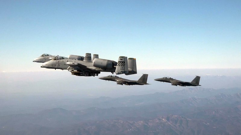지난달 15일 열린 한미 공군의 올해 첫 연합 공대지 실사격 훈련. 사진은 편대 오른쪽부터 차례대로 한 공군 F-15K 전투기 2기, 미 공군 A-10 공격기 2기. 공군 제공 뉴시스 |