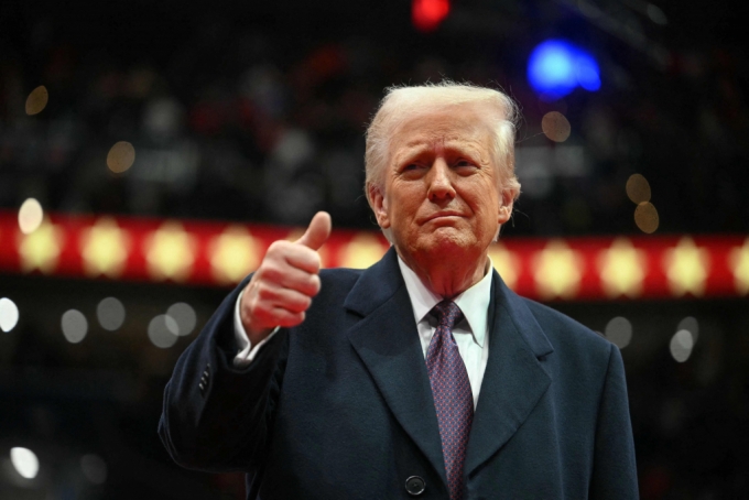 도널드 트럼프 미국 대통령이 지난 20일 (현지시간) 워싱턴 '캐피털원 아레나'에서 열린 47대 대통령 취임 퍼레이드서 엄지를 치켜 세우고 있다. /AFP=뉴스1 |