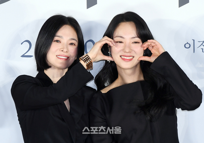 배우 송혜교(왼쪽)와 전여빈이 16일 서울 용산구 아이파크몰 CGV에서 진행된 영화 ‘검은수녀들’ 제작보고회에서 취재진을 향해 포즈를 취하고 있다. 사진 | 박진업 기자 upandup@sportsseoul.com |