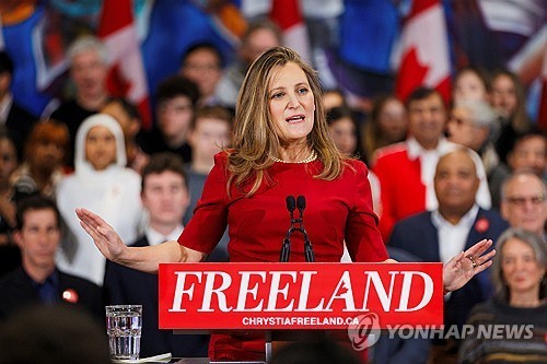 트럼프 1기 행정부와의 무역 협상을 주도했던 프릴랜드 전 장관은 집권 자유당 대표를 뽑는 선거에 출마한 상태다.