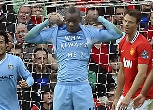 또 심심하다는 이유로 맨시티 유소년 선수들을 향해 다트를 던지거나 집 안에서 폭죽놀이를 하다 집을 홀라당 다 태워버리면서 구단과 팬들을 몇 번이나 황당하게 만들었다. 구설수에 시달리던 발로텔리는 득점 세리머니로 '왜 항상 나야(Why always me)?'라고 적힌 속티를 공개하면서 항의하기도 했다.