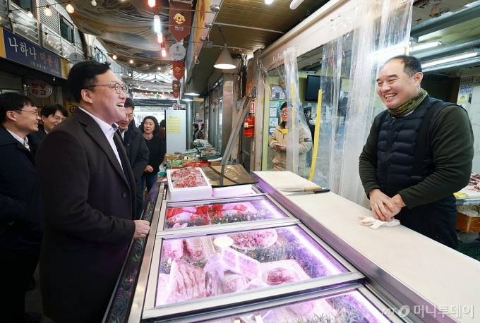 (서울=뉴스1) = 김병환 금융위원장이 설 명절을 앞둔 23일 오후 서울 종로구 전통시장인 통인시장을 방문, 상인들의 애로사항을 듣고 있다. (금융위원회 제공) 2025.1.23/뉴스1 Copyright (C) 뉴스1. All rights reserved. 무단 전재 및 재배포, AI학습 이용 금지. /사진=(서울=뉴스1) |