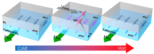 철(Fe)과 로듐(Rh)의 합금인 FeRh에서 발생하는 양자적 스핀 펌핑 [사진=과기정통부] |