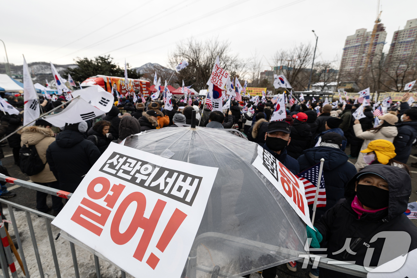 (의왕=뉴스1) 이승배 기자 = 30일 오후 경기 의왕시 서울 구치소 앞에서 윤석열 대통령 지지자들이 윤 대통령 석방 촉구 및 응원 집회를 하고 있다. 윤 대통령 측 석동현 변호사에 따르면 윤 대통령은 비상계엄은 내란이 아니며 모든 것이 헌법 테두리에서 이루어진 것이라는 입장을 고수하고 있다. 이어 설 연휴 이후 윤 대통령 측 변호인단은 윤 대통령 보석을 청구할 방침을 세운 것으로 알려졌다. 2025.1.30/뉴스1