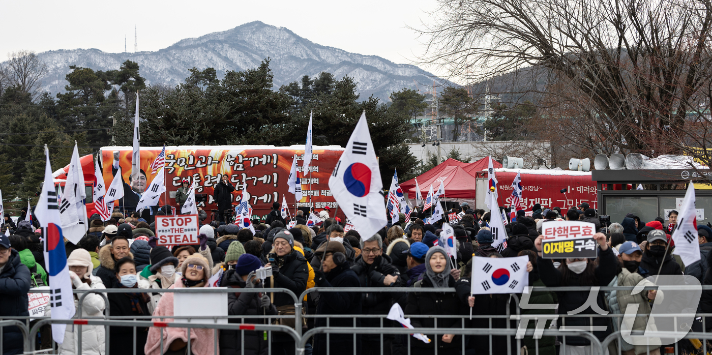 (의왕=뉴스1) 이승배 기자 = 30일 오후 경기 의왕시 서울 구치소 앞에서 윤석열 대통령 지지자들이 윤 대통령 석방 촉구 및 응원 집회를 하고 있다. 윤 대통령 측 석동현 변호사에 따르면 윤 대통령은 비상계엄은 내란이 아니며 모든 것이 헌법 테두리에서 이루어진 것이라는 입장을 고수하고 있다. 이어 설 연휴 이후 윤 대통령 측 변호인단은 윤 대통령 보석을 청구할 방침을 세운 것으로 알려졌다. 2025.1.30/뉴스1