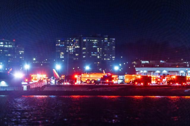 30일(한국시간) 미국 워싱턴 DC의 레이건 국립공항 근처에서 발생한 항공기 추락 사고로 비상 차량과 선박들이 구조작업을 위해 사고 현장으로 모이고 있다 [사진=EPA·연합뉴스] |