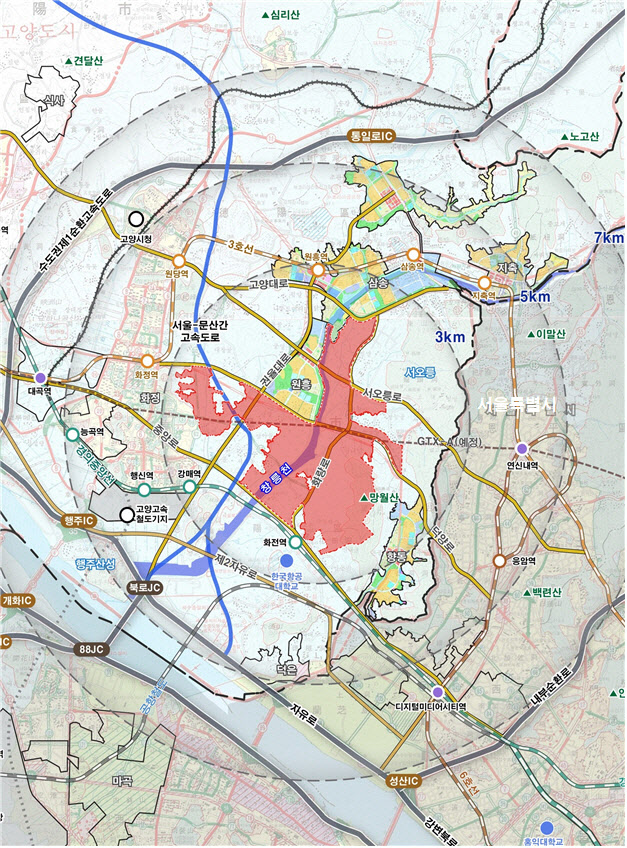 이 지역은 서울 은평구, 마포구 등과 인접해 있어 기존 도심 인프라를 함께 누릴 수 있을 뿐 아니라 GTX-A 노선 창릉역(2030년 개통 예정), 서울 문산고속도로, 자유로, 제2자유로 등의 이용이 편리한 위치에 있어 서울 도심으로의 접근성이 뛰어나다.